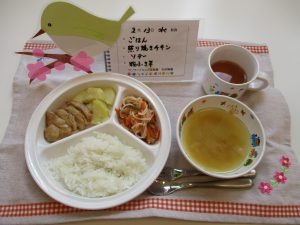 *ごはん *みそ汁 *ローストチキン *ポテトサラダ *ボイル野菜