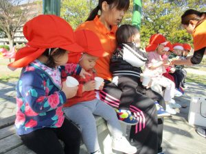 伏木公園に行く日は、おやつを持って早めに園を出発し、たくさん遊ぶ時間がつくれるようにしています
