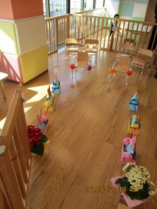 保護者の方と一緒に席に座り、【卒園式】の始まりです?