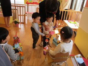 1歳児クラスのお友だちが、代表でプレゼントをしてくれましたよ![]()