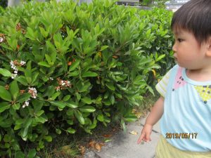 みんなが大好きな電車道では、みんなで飛行機や電車を眺めたり、またまた虫探しをしたり、近所のおうちになっているみかんを観察したりと興味のあることをそれぞれ楽しんでいました