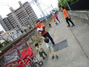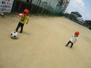 月曜日は野見神社まで行き、広場でボール遊びを楽しみました