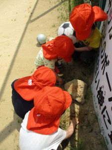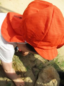 虫探しでは、保育士の真似をして石をどかせて石の下にいる虫を探すなど、本格的な虫探しに感心してしまいます