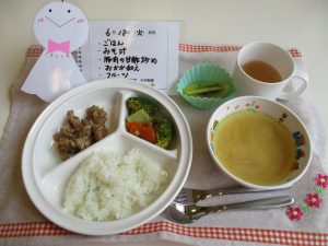 *ごはん *みそ汁 *チキンと野菜のスープ煮 *粉ふき芋 *フルーツ 【離乳食】 *全...