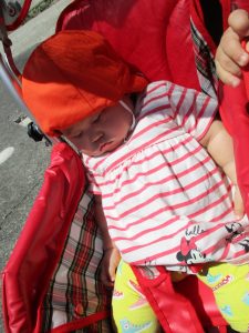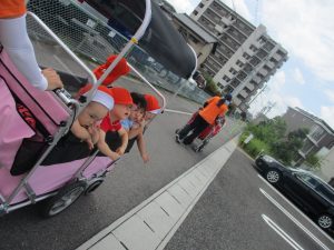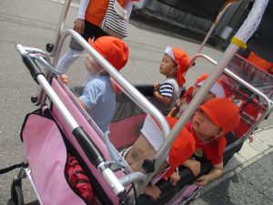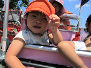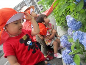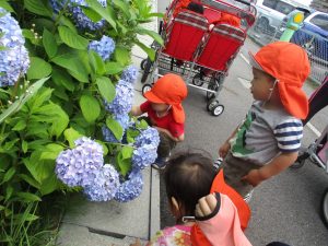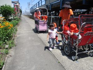 日差しが強く、暑さも気になったので、園の周りをグルっと一周のお散歩にしました![]()