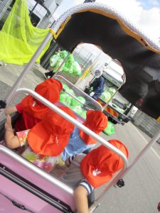 園のすぐ近くでは、タイミング良くゴミ収集車を見ることができましたよ![]()