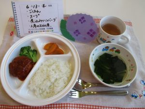 *ごはん *スープ *煮込みハンバーグ(ブロッコリー添え) *人参のおかか煮 【離乳食...
