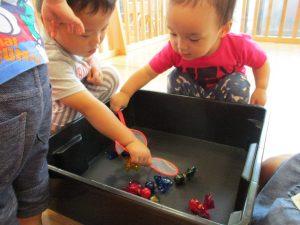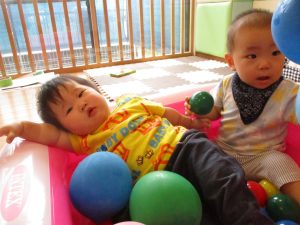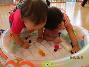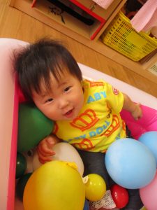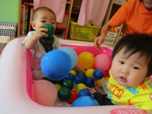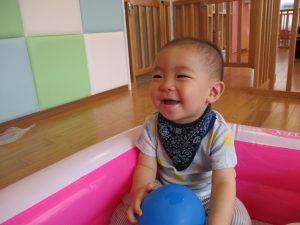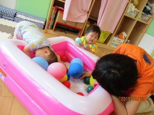 0歳児クラスのおともだちは、ボールプールで楽しみました
