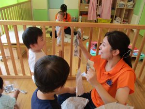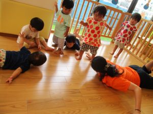 今週はなかなか水遊びができず、晴れ間をぬってお散歩に行ったり、室内で身体を動かして遊んだりして過ごしました