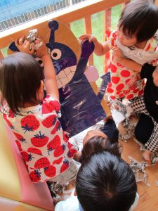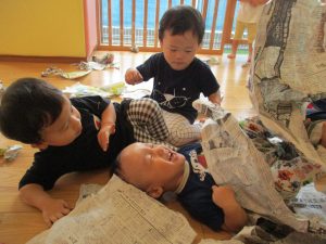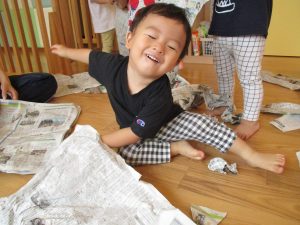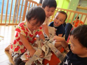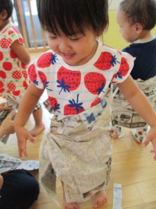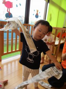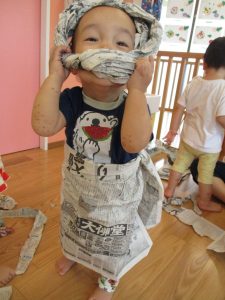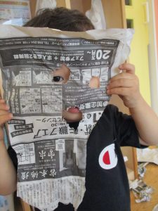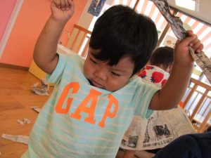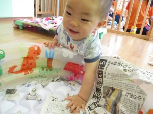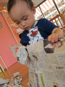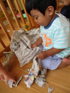大胆に破いたり、新聞紙の中に隠れたり、色々な遊び方で楽しんでいました