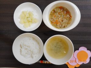 粥 味噌汁 すき焼き風煮 ゆでじゃが芋