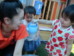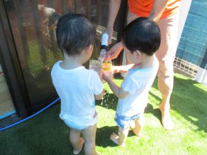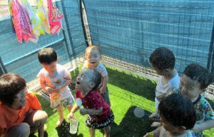 水に濡れることにもすっかり慣れて、思い切り楽しんでいる子どもたち