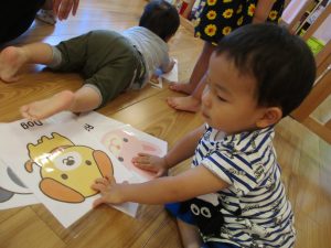 みんな保育士の言葉やヒントをよく聞いて、絵札を探していましたよ