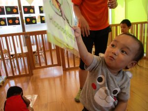 『○○は?』と英語で質問すると、ヒントをもらいながら一生懸命探す子どもたち