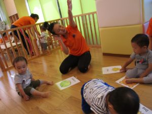 水遊びの後は、室内で英語のカリキュラムも行いました