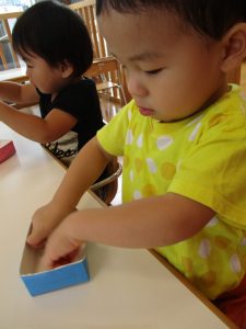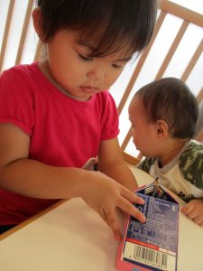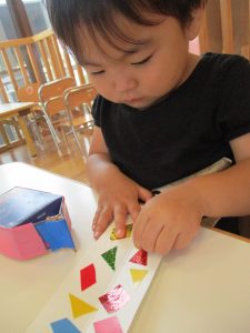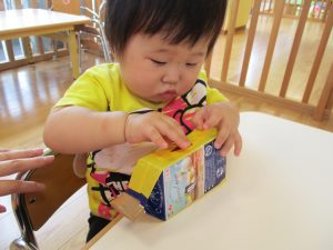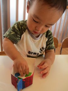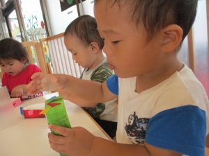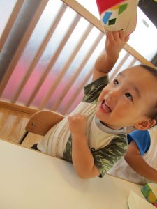 『できたら見せて~』と保育士が声をかけると、『できた~』と満面の笑みで見せてくれましたよ