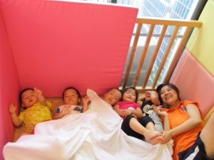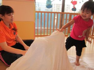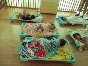 『おやすみ~』と保育者が声をかけると、目を閉じて眠る真似をするかわいい姿もありましたよ