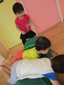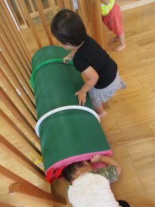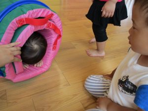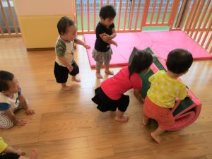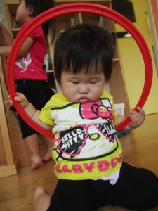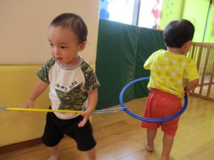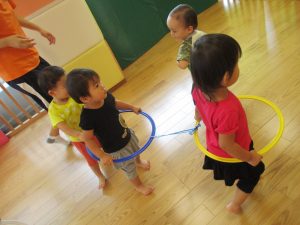 フラフープでは、お友だちと一緒に電車ごっこを楽しみました