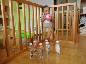 倒すことより倒れたピンの方が気になる子も![]()