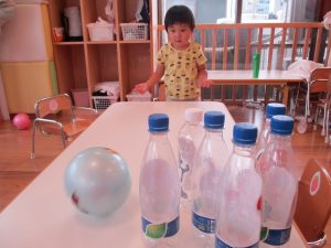 お天気のいい日にはお散歩に行ったり、園庭で色水あそびをしたり、天気の悪い日には室内で身体をめいっぱい動かして楽しみました![]()