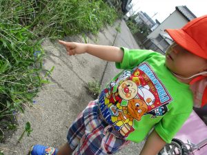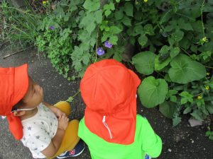 空から音がして『何の音かな~?』と探していると、子どもたちの方が早く飛行機を見つけて教えてくれましたよ![]()