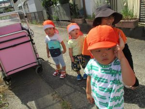 の掛け声が印象に残ったのか、園までの帰り道は子どもたちも『1,2,1,2、・・』と掛け声をしながら歩くかわいい姿もみられましたよ