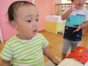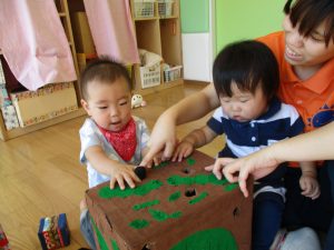 0歳児さんは保育士の手作りおもちゃで楽しみましたよ