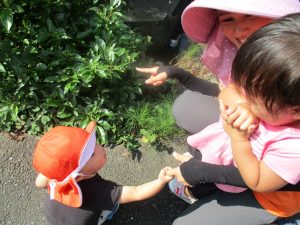 夏に見た朝顔が種になっていたり、秋の花や野菜を見つけたりと探索や観察に夢中な子どもたちです![]()