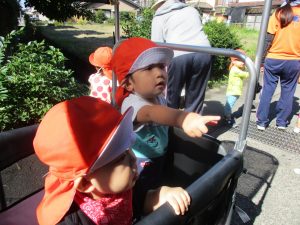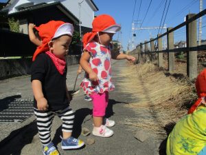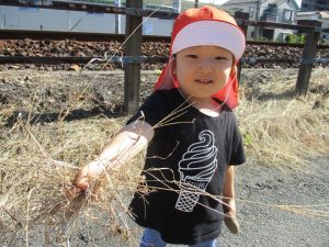 電車道では、枯草を踏んでカサカサという音を楽しんだり、キンモクセイのいい香りをかいだりして秋を楽しみました