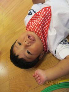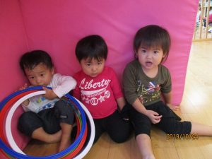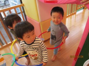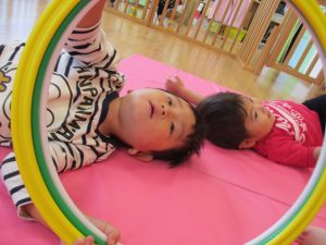 順番にパズルをしたので、待っている間はマットやフラフープで遊びましたよ![]()
