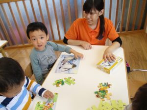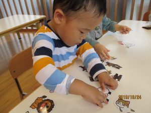 今日は朝から天気がいまいちだった為、室内でパズルや絵合わせをしました![]()