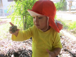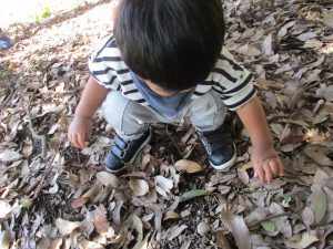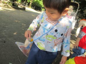 みんなお気に入りのどんぐりや葉っぱを拾って自分のバッグに入れていましたよ![]()