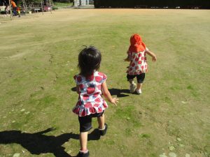たくさん拾った後は広場で思い切り走りまわり、帰り道では