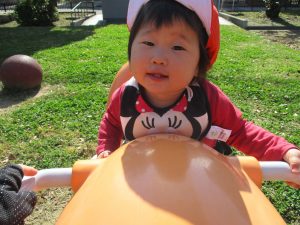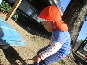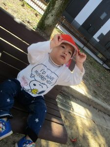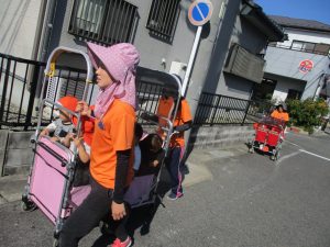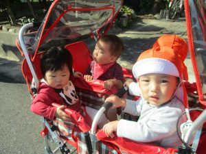 普段は月齢の低いお友だちが乗っている散歩車にも乗ることができ、いつもと違う気分でお散歩です