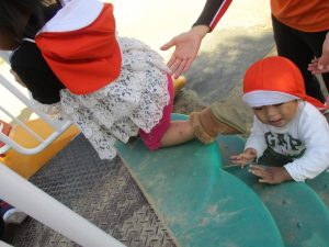 高いところから下を見るとちょっと怖くなっちゃった子も