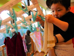 拭き掃除の後は、使った雑巾を洗って、上手に干してくれました