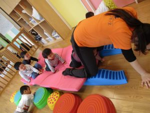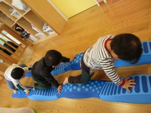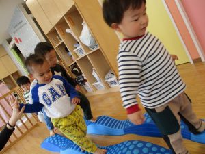 外はとっても暖かかったのですが、地面が濡れている為今日は室内でコーナー遊びを行いました