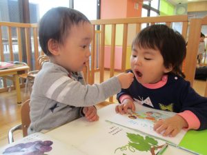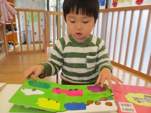 好きな絵本を1人で集中して見たり、お友だちと一緒に楽しんだりして落ち着いた時間を過ごせました