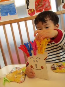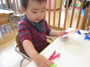手先を使った玩具では、器用に洗濯ばさみを使っていましたよ