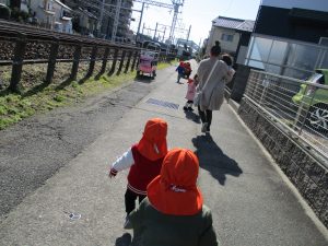 線路沿いでは大好きな保育士の元まで「よーい、ドン!!