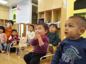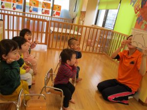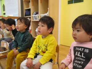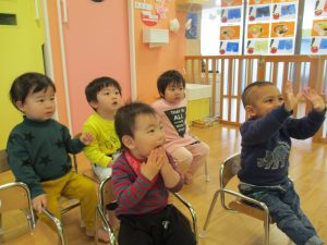 誕生児の紹介の後は、保育士からの出し物の時間です![]()