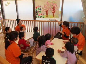 誕生会が始まり、みんなに『今日は誰のお誕生会かな