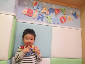 保育士からの質問にも考えながら答えてくれて、みんなからお祝いの歌をうたってもらい、照れくさそうにしている姿がとってもかわいかったです![]()