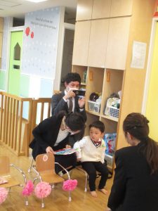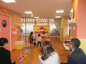 保護者の方と一緒でちょっぴり恥ずかしい様子でしたが、お友だちがしている様子を見守ってくれていましたよ