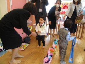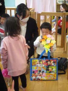 記念品や在園児さんからのプレゼントも大切そうに受け取ってくれました