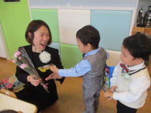 最後に、卒園児から保護者の方へ感謝のプレゼントを渡しました