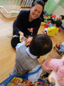 最後に、サプライズで卒園児さんと保護者の方々から職員にプレゼントを頂きました