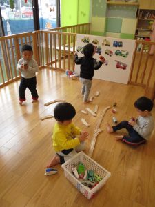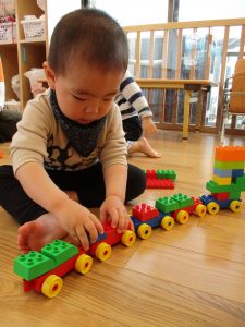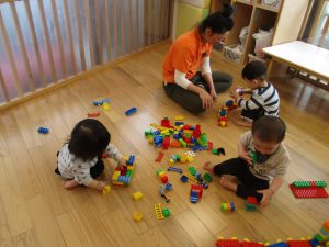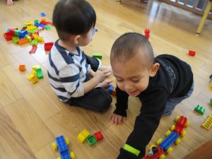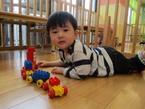 好きなおもちゃでは安心した表情で遊び、新しいお友だちに興味のある進級児は側に行って同じ遊びを楽しんでいましたよ![]()