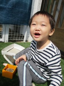 少しずつ園にも保育者にも慣れてきて、とびきりの笑顔を見せてくれました![]()
