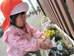 園の前のビオラは春めく季節の中、少しずつもりもりと元気になってきていますよ![]()